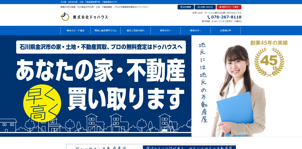 株式会社ドゥハウスは金沢市内を中心に不動産の売買・買取を手掛ける地域密着型企業で、迅速で丁寧な対応が評判です。買取に関しては仲介手数料不要でスムーズな現金化をサポートし、相続物件や空き家、農地など難易度の高い物件にも柔軟に対応可能です。多数の買取実績を基に、売主の希望と状況に合わせた提案力に定評があります。地域に根付くネットワークと多様な広告戦略により、買手を早期に見つける強みも持っています。