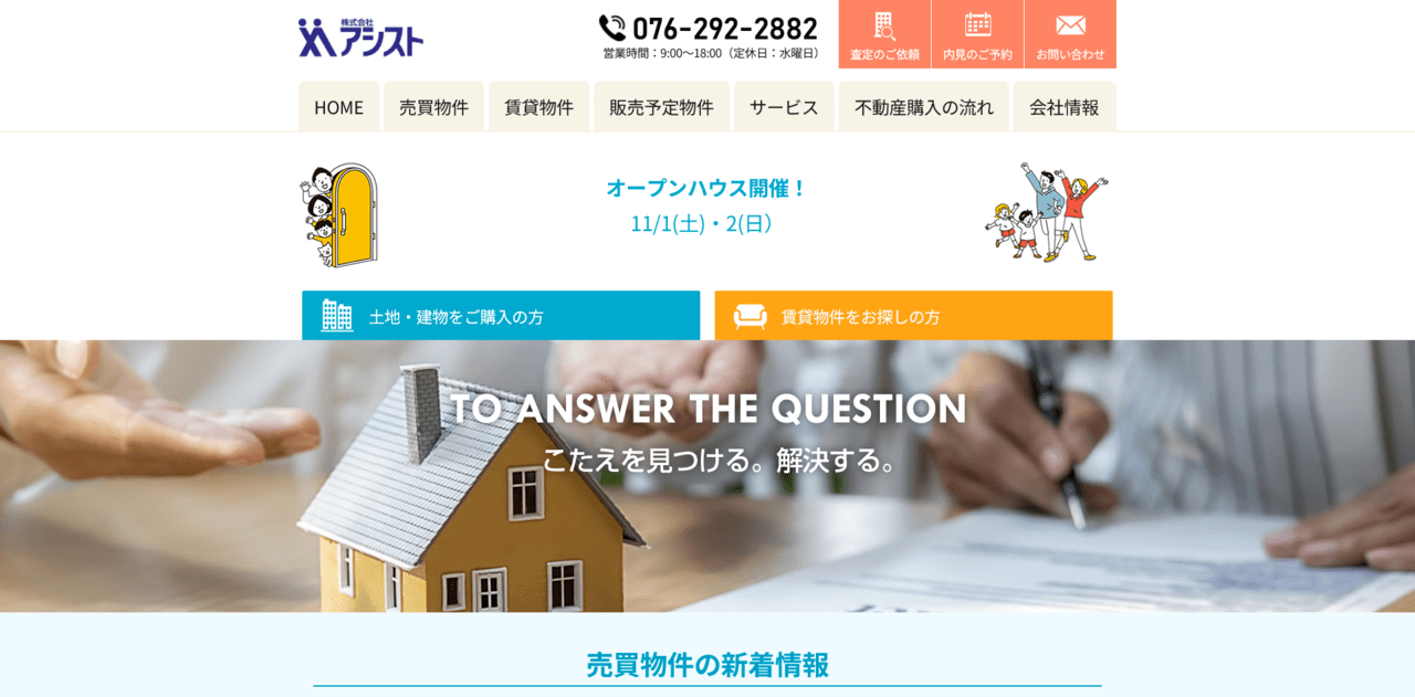 株式会社アシストは金沢市内を中心に地域密着の不動産サービスを展開しており、柔軟で迅速な買取対応が評価されています。経験豊富なスタッフが多く在籍し、丁寧かつ親切な対応を徹底。相続物件や空き家、農地などの扱いにも慣れており、複雑な事情がある物件でもスムーズに買取を進められます。また、無理な押し売りをせず、売主が安心して相談できる環境づくりに注力しています。査定から買取、契約まで一貫して対応しており、手間をかけずに売却したい方におすすめです。