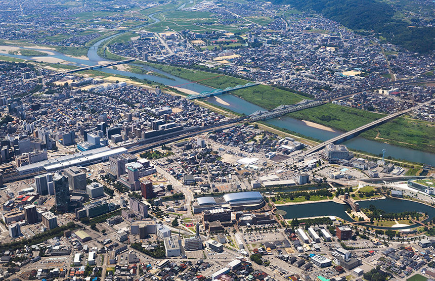 富山市は人口40万人を超える県内一の都市であり、近年は富山駅立体交差や路面電車南北接続をはじめ、駅ビル商業施設「MAROOT」や宿泊施設「ホテルヴィスキオ富山」、駅前にはテナントやオフィスからなる県最大規模の複合ビル「Dタワー富山」の開業などが続いています。